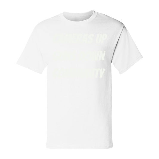 Cameras Up Guns Down Community Unisex Champion T-shirt